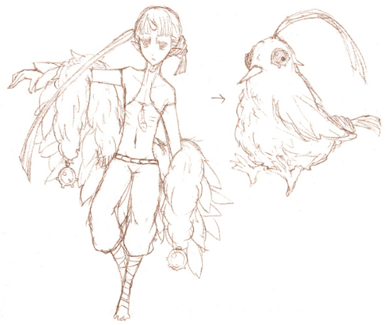 結局飛べるような飛べないような設定が欲しかったんで、鳥さんにトランスフォームするもふもふマントというアイテムを装備させました^q^